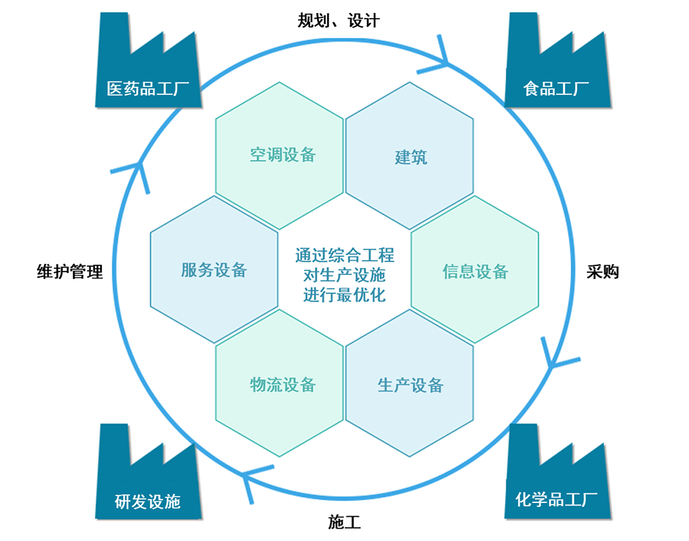 我们坚持“建筑与设备有机融合”理念,提供从项目选址、设计施工到竣工投产,从建筑到生产物流设备的全周期、一体化、一站式服务。
