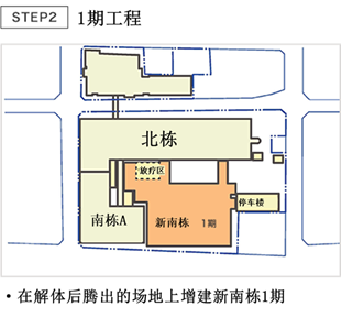 1972年,南栋A竣工后,1994年增建了北栋,2001年增建了南栋B。对于这些现有设施,医院希望改建基于原耐震基准的南栋A,并扩展其功能。