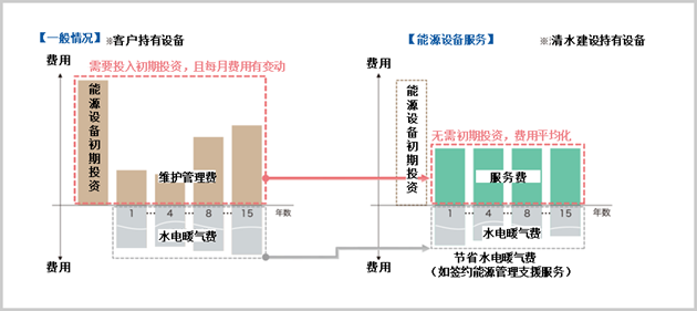 本次,该院首次采用了新形式的“能源设备服务”,即清水筹集部分能源设备资金,提供定额制能源服务。以这种模式,无需初期投资、定期维护管理费、突发性故障等产生的修缮费用,并且一切均由清水处理。这样,对爱全医院来说,可以聚精会神专注本业,服务患者。
