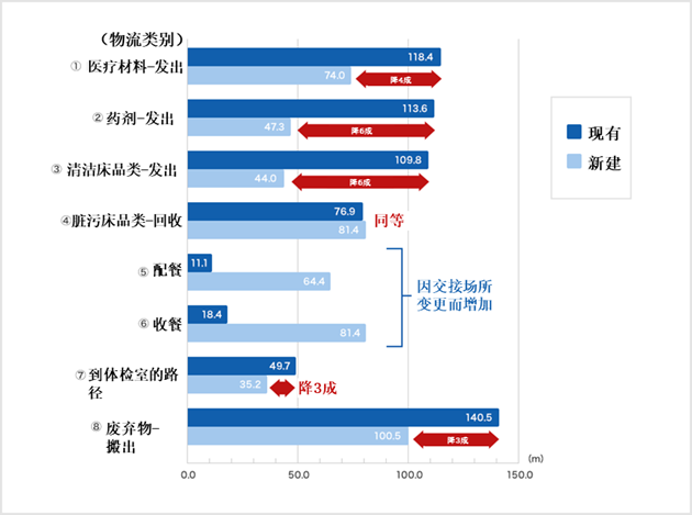 经验证,通过这些措施,新医疗中心缩短到了现有医院最大约6成的动线。