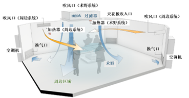 例如,设置有8个房间的手术室中,安装了让执刀医师和医疗员工都舒适的新空调系统。一般的手术室存在一些问题,比如执刀医师靠近手术用照明,所以会出汗,而员工在其周围就会感觉很冷。而新空调系统就解决了这些问题。