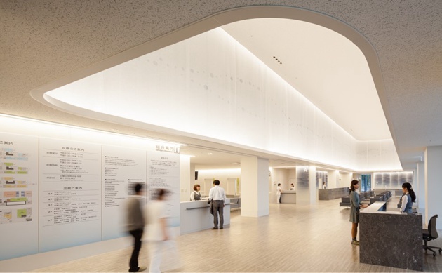 新住院楼具有服务重病患者的功能(急性期),现有大楼具有脱离急性期而需康复和出院支持的患者,及长期住院患者所需的功能(恢复期、慢性期)。映出七条丰饶风景的桥梁,象征着连接当地居民与医院的愿景。