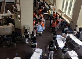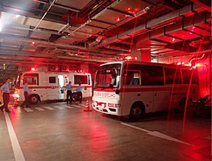 2011年发生东日本大地震时,作为停电对象,发生过停电。基于此经验,我们与医院一起制定了停电时的现场运营对策,以应对未来的地震灾害。并且,在仔细考量停电时的诊疗后,制定出BCP计划※4,然后由医院员工、PFI员工全员出动实施演练。